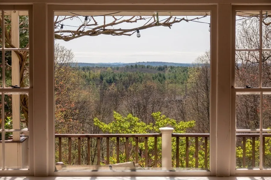 The VIEW! Enjoy the gorgeous and breathtaking views of Boston from your living room, kitchen and family room every single day. Dream location, with one of the highest elevations in Harvard. Extremely private setting abutting conservation and overlooking another 64 acres of conservation land. The beautifully manicured and landscaped three acres feature multiple seasons of blooming specimens. The updated home offers impeccably maintained spaces with many sun-filled rooms for living and working. The first floor offers a 25' living room with brick fireplace, large dining room with wainscoting, open family room and kitchen, plus an enormous deck running the entire width of the house for endless outdoor enjoyment. Four large bedrooms on the second floor and walk-up attic staircase for expansion possibilities. All three bathrooms have been recently renovated and hardwood floors can be found in ...