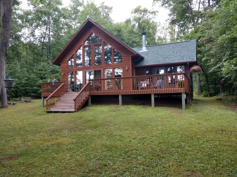 Impeccably maintained chalet on this great little fishing lake. This cabin is just the right size for your vacation or weekend-getaway with 2 bedrooms plus loft sleeping space. Beautiful wilderness lake views. Three season porch and backyard deck. Enjoy 3 acres of woods for privacy. The 2-car garage completes the package. Lower Holly Lake has excellent fishing and the perfect lake for kayaking, canoeing or paddle boarding. This property is move-in ready with furniture/furnishings negotiable. This property is a gem!