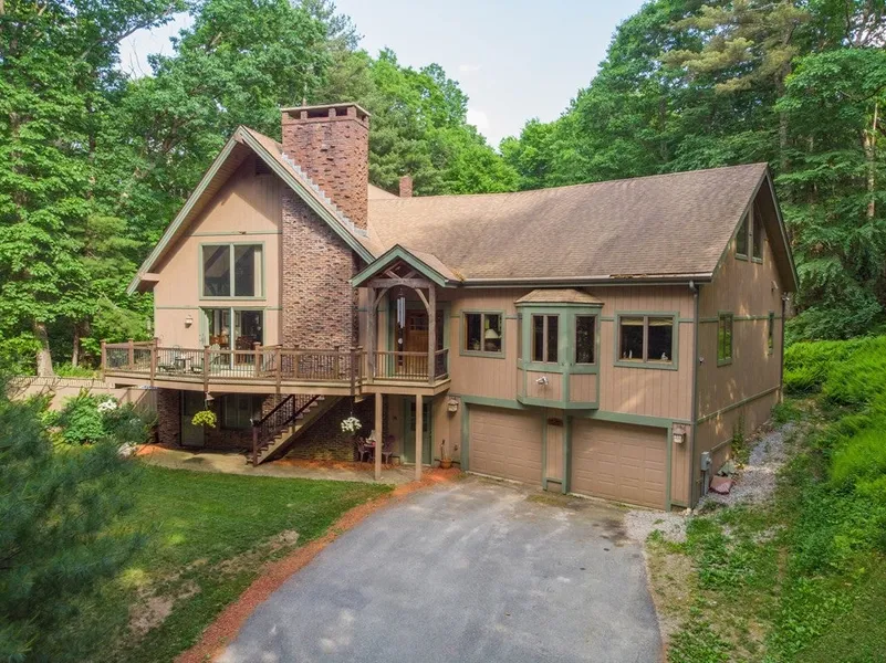 What an amazing unique find-- a home with CHARACTER and QUALITY! This beautiful home is over 3000 sqft with 4 bedrooms and 2.5 baths and sits on 3.1 private acres. You will love the vaulted ceilings, exposed beams, the floor to ceiling fireplace and open concept layout. The living room, reading nook, and master suite has stunning Douglas fir post and beam trusses from Alaska and radiant floor heat. No expense was spared in the master bath with an "Alcove" spa tub and shower with 6 body jets and 2 shower heads. There are 2 more bedrooms on the first floor and a 4th bedroom with 1/2 bath and balcony on the second floor. All this plus a finished walkout lower level with fireplace and bonus room used as an exercise room or office. And a gorgeous yard that abuts a 20 acre tree farm. 3 car heated garage . Welcome home to your own private paradise!
