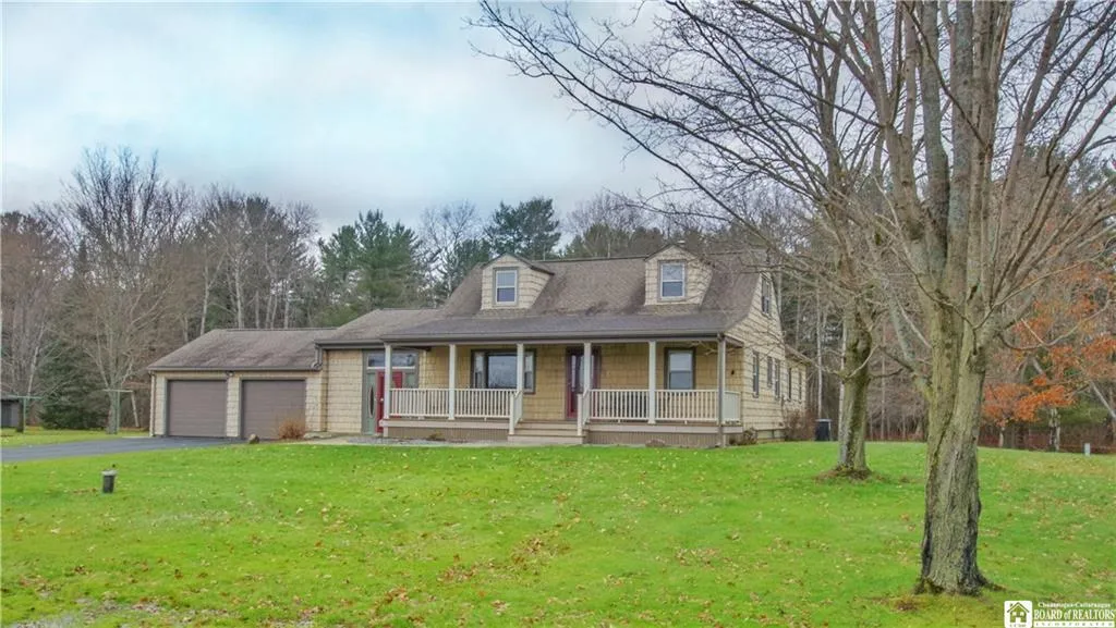 Set on 3 acres, located on a quiet dead end street, Bemus School district and in a lower taxed area this one owner home is being offered for the first time. The location offers privacy as the home sits on a lot across from wetlands and adjacent to a Chautauqua Watershed Conservancy. There are over 30 acres behind you to roam! The home is much larger than it appears and it plays host to 4 bedrooms, 2.5 baths and multiple living areas. The main floor has 2 bedrooms, each with a bathroom(one full, one half). The floor plan has many different options. With three living areas on the the main floor you're sure to find the space you need. The kitchen has ample cupboard and counter space and a large eat in area. A family room with cathedral, open beam ceilings and gas fireplace is a step down from the kitchen and a bonus living area is adjacent. There is a separate living/den area at the front entry as well. Upstairs you'll find a typical "Jack and Jill" set up with 2 beds split by full bath. Large dry basement with lots of potential. Two car attached garage and bonus detached garage at the back corner of property. Backup generator, UV H2O system. More than a home...its a Lifestyle!