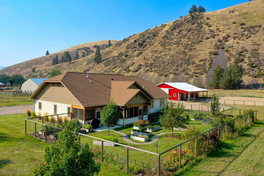 Attention outdoor enthusiasts, animal lovers, & gardeners! This 3-acre property features a 2800 sqft home, built in 2018, with 3 bedrooms + an office, 2.5 baths, attached 3-bay garage with workshop, & a 3-stall barn. Amenities include: gas fireplace in living room, fully-equipped kitchen w/ center island & breakfast bar open to the dining room, primary suite with tile shower, soaking tub, & 2 walk-in closets. Outside boasts a covered, screened-in patio, extensive landscaping, & sprinklers. The barn comes with hay storage, tack room, corral, & a heated watering station. Property is fenced & cross-fenced. Covered RV parking spot has a 30-amp electrical plug-in. Utilities include: Msla Electric Coop electricity, Northwestern Energy natural gas, Verizon cell service, Spectrum cable TV & high-speed internet, central air conditioning, private septic & a productive well. Property is located less than 5 miles from Missoula with easy year-round access via paved County road. Sellers had a professional home inspection done & septic pumped in 2024. This one-owner property is in pristine condition. Here's a rare opportunity to acquire a meticulously-maintained Montana property located in a storybook setting. There's plenty of elbow room with possibilities to expand. For outdoor recreation enthusiasts, multiple trailheads are only a few minutes up the road from the property. The flat, 3.11 acre parcel is situated on the sunny side of the canyon w/ stunning views. Please enjoy the video and 3D property tours, then call for an appointment to see this special place in-person. You'll be glad you did.