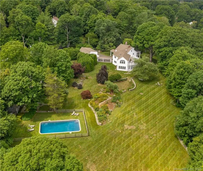 One of the most beautiful properties located among Umpawaug Estates. The setting is unparalleled from its sweeping lawns, manicured gardens, 2-story open porch, stone patios, stone walls, wisteria covered stone arbor and in-ground heated Pool. The 1880 neoclassical style Colonial is a perfect blend of old and new - original character and craftsmanship - beautiful moldings, arched doors, built-ins, wide board flooring - yet has been updated with all the expected modern luxuries. Additional outbuildings include the rustic 1 BR Cottage/Pool House built in 1890 with Kitchen and Full Bath w/Laundry, The Barn with the capacity to house 3 additional cars currently being used as an Indoor Sport Court and the detached 3 car Garage with a private Office/Studio above for those WFH. Some of the interior highlights include the well appointed Chef's Kitchen - large island, 2 beverage drawers, 2 dishwashers, stainless appliances, honed granite counters, walk in Pantry - open to the Family Room and Dining Room just perfect for entertaining. The Sun Room with walls of windows overlooks the gardens. The Master Bedroom Suite is its own wing. The Bedroom is grand in size and has a gas fireplace, walk-in closet fitted with custom organization, private Full Bath and a Terrace overlooking the beautiful grounds. All secondary Bedrooms are ensuite with updated private or Jack and Jill Baths. Redding offers miles of trails to explore, award winning schools and is 60 miles to NYC.