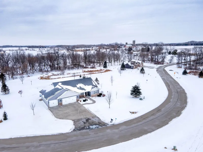 Past Parade Home situated on 3.12+/- acres! This quality-built home features an open concept with the Living room offering cathedral ceiling with a gas fireplace and a stone accent front. The Kitchen has a huge center island with the sink in it and plenty of space for seating around it. Maple cabinetry with an appliance package included. The Breakfast area has a patio door leading you out your covered patio and southern exposure and private yard. Master Bedroom has a tray ceiling and walk-in closet. Master bath has a whirlpool tub with a tile walk in shower and dual sinks. 2 other ample sized bedrooms with a main bath. 1st floor laundry and locker area by the garage entrance complete the main floor. LL is ready for your finishing touches with 3 egress windows and stubbed for a 3rd full BA.