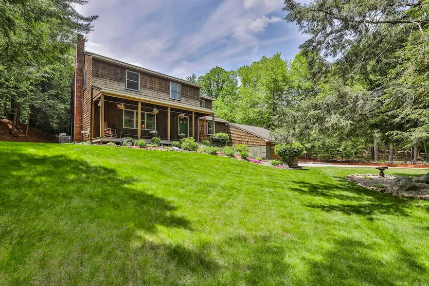 This 4 bedroom, 3 bath colonial is situated on private, 3+ acre lot, nestled far off the road and offering a park like setting. This home includes a 3 car garage and a detached 1 car garage with 10 foot garage doors. The newly renovated kitchen boasts new appliances, an abundance of cabinets and a walk in pantry. There is new bamboo hardwood flooring throughout the home. The first floor offers a large living room open to the dining area that leads to a private back yard. The front to back family room leads to a lovely screened in porch. There is also a 3/4 bath on the first floor that includes a tiled shower. The second floor includes a primary suite with a 3/4 bath and 3 other bedrooms and a full bath with dual sinks. Located minutes from the Mass stateline, this location is ideal for commuting. All this coupled with the award winning Hollis-Brookline school system make this home a must...