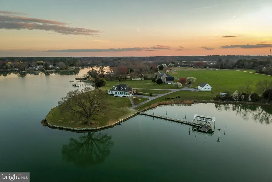 Beautiful waterfront Peninsula on St Jeromes Creek with close proximity to the Chesapeake Bay. Enjoy your private oasis of endless panoramic views and Eagles & Osprey nests close by. Sheltered coves & oyster beds. Fish, crab or swim from the pier or sunbathe on the pier deck over covered boat slip. Great place to entertain & plenty of room in the house for guests. Brick cape cod with master bedroom on main level & 3 additional bedrooms. Family room has a brick fireplace & is open to kitchen & sunroom, all with views of the creek. Upstairs has a fabulous view from the large A frame window overlooking the creek, great location for an office! 2 , Water Furnace geothermal units will efficiently heat this home & heat your hot water. No need for fossil fuels & reduces electric bills!!! Detached 3 car garage with shop area, 1/2 bath, oil furnace & second story. Circular driveway. G...