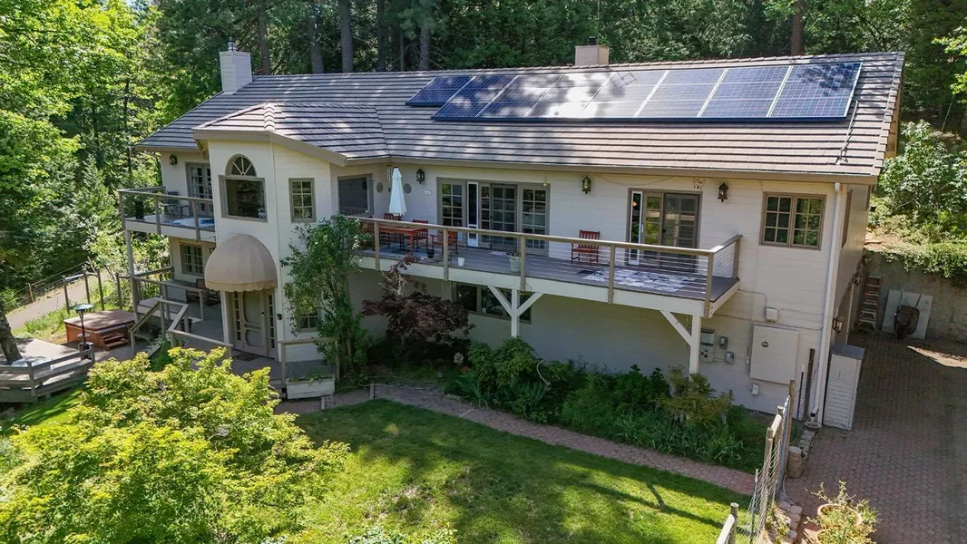 Welcome to Bela Vista Estates! This custom home has Mountain views, fresh air & terrific star gazing! Living Room has a Wall of windows with a door to the upper deck. Wood stove w/brick hearth, vaulted ceiling, open to the spacious kitchen. Raised panel oak cabinets, granite slab counters, center island w/bar stools & a breakfast bar! Kit. dining has picture windows w/forest views. Formal dining could be an office? Remote Primary bedroom has French doors to the private balcony, Primary bath with corner tub and shower stall. 2 other bedrooms on far side of home, one has door to rear deck & views! 3rd bedroom has corner windows & walk in closet. Guest bath in between these bedrooms. 6 car GARAGE! Also has a separate SHOP/hobby room. Downstairs was built for in laws, has kitchen, full bath, even a patio w/pavers on side of home + lg deck in front. SOLAR is owned. Whole house water filtratio...