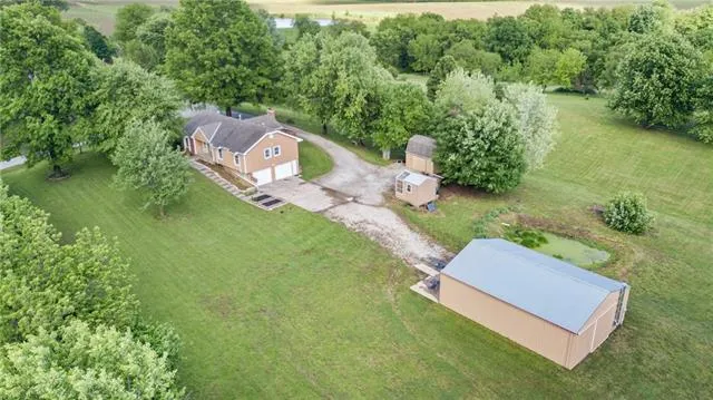 Looking to be right outside the hustle & bustle of the city? Don't miss this 3 bedroom, 2 bath raised ranch situated on 3.15 acres in Liberty, MO. Greeted into the home by an entry opening to living room w/ vaulted ceilings, fireplace, & doorway to large deck. The kitchen boasts a stove, dishwasher, microwave, refrigerator, & eat-in space opening to a formal dining room. Primary bedroom w/ en-suite. The en-suite hosts dual vanities, dual closets, & shower. 2 additional bedrooms & full bath finish out the main level. Lower level complete w/ rec room space, finished home office, & laundry room w/ custom built-ins. 2 car garage. Low maintenance vinyl siding. Over-sized storage shed. Stand-alone greenhouse. Don's miss the 30x40 building w/ concrete floor, two 10 foot doors, electricity, & warming stove. Over-sized driveway space for ample parking. Room for gardening & so much more. Minutes f...