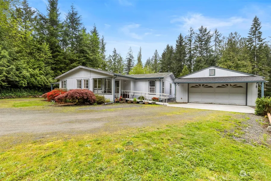 Rare home on 3.15 acres on the outskirts of Quilcene! Triple-wide manufactured home features a large kitchen with island, lots of storage, & many large windows to let in the light. Vaulted ceilings provide for spacious living and dining rooms to entertain. New deck facing the trees with peekaboo views of the water where you can see the lights of the Herb Beck Marina and oyster cannery at night. A ten minute drive from downtown Quilcene, it's secluded but not too far away from amenities. Property is surrounded by trees for privacy and includes a dry cabin with loft for extra storage and bedroom or studio space. Home is equipped with a Kinetico water filtration system that provides some of the most delicious water you have ever tasted!