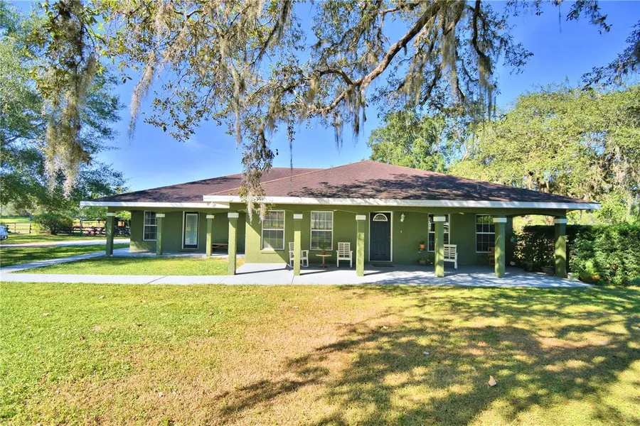 Are you craving privacy and space? This 4 Bedroom 2.5 Bath Country Style home is on 3.17 acres and boasts a peaceful and private setting. You will look forward to coming home every day to the harmonious oasis with birds chirping and tons of nature to watch and explore. Step inside from your amazing front porch to discover the large living room with a cozy gas burning fireplace. The kitchen is open to the dining room and is perfect for gathering family and friends together. The split floor plan offers two ample-sized bedrooms down one hallway which also has a guest bath close by. At the other side of the home, the private master suite is very spacious with a full en-suite bath featuring a pedestal sink and a tub with a shower. There is a 4th bedroom which is currently used as an office and has direct access to the front porch. To the back of the home, step out of the dining room onto the 10 x 18 screened in lanai is great for relaxing and taking in the amazing surrounding views. This 3+ acres also offers a 60 x 30 Pole Barn with a storage room attached, providing tons of space for equipment, gardening tools, toys, etc. There is a second 20 x 46 Pole Barn with an attached Dog Kennel. This property caters to a variety of interests, making it an extraordinary option for the family seeking a rural lifestyle with opportunities for gardening, keeping animals, outdoor activities, and more. Extra bonuses include ceramic tile flooring throughout the home (no carpet), AC was replaced in 2022, Hot Water Heater was replaced in 2022 and much more. Located close to US 27 with easy access to I-4. Call today to schedule your private tour.