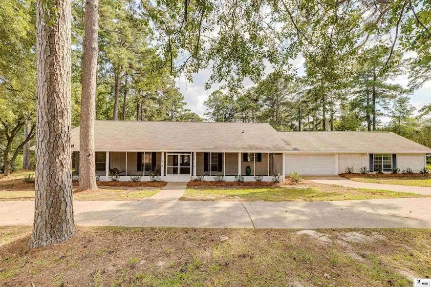 This beautiful white brick home sits on just over 3 acres and offers country living with plenty of space and amenities. A circle driveway leads to a massive screened-in front porch, welcoming you into the foyer. To the right is a flexible bedroom or office with a built-in desk. The living room features a brick gas-burning fireplace and sliding barn door entry, opening to the dining room filled with natural light. The kitchen offers tiled countertops and backsplash in neutral colors with direct access to the two-car carport. Step outside to the fenced backyard with storage building and patio area. The primary suite includes an en suite bath with double vanity, a large tiled walk-in shower, a soaking tub, and two walk-in closets. Two additional bedrooms with walk-in closets and a remodeled hall bath complete the main home. A standout feature of this property is the guest house with 733 hea...