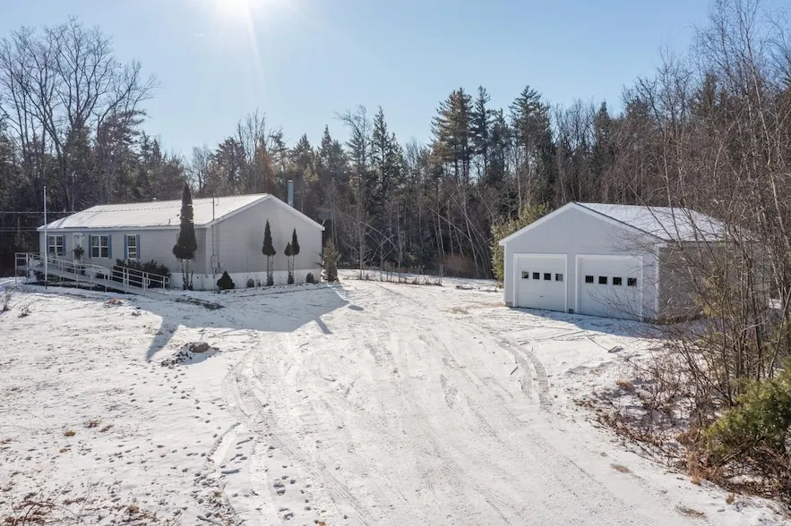 **OFFER DEADLINE: Wednesday, Jan. 22 at Noontime!** Welcome to 583 First Crown Point Road in Strafford! Showings begin on Saturday, Jan. 18th. This well-maintained, 3-bedroom manufactured home sits on 3+ super private acres, tucked back from the road as a peaceful retreat! Built in 2006, this home offers a thoughtfully designed & functional living space. Inside, you'll find an inviting open-concept kitchen that's perfect for entertaining, with plenty of counter space & storage, even a bonus deep freezer for storing extra essentials! Two cozy living areas, one with a stunning stone-appointed wood-burning fireplace, perfect for winter evenings. This home also includes thoughtful accessibility features, such as a zero-step handicap entrance ramp. Large Primary Suite w/walk-in closet & easy attached bathroom w/step-in shower. One-floor living at its best, offering both comfort & convenience! Incredibly lush, private & serene 3.18-acre lot, PLUS a detached 2-car garage, providing ample space for vehicles, storage, or workshop. Whether you're enjoying the quiet surroundings or relaxing by the fire, this home offers something for everyone. Don't miss the opportunity to make this beautiful property your own. **OFFER DEADLINE: Wednesday, Jan. 22 at Noontime!**