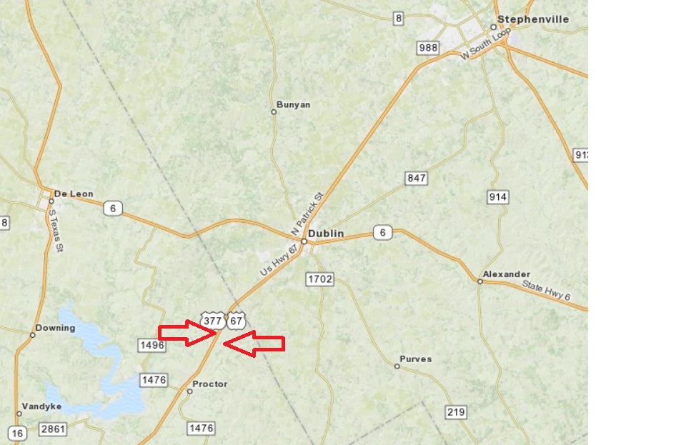 LOCATION: 28 minutes west SW of Stephenville or 1.9 hours west SW of Fort Worth via US hwy 377. Outstanding paved US hwy 377 frontage.