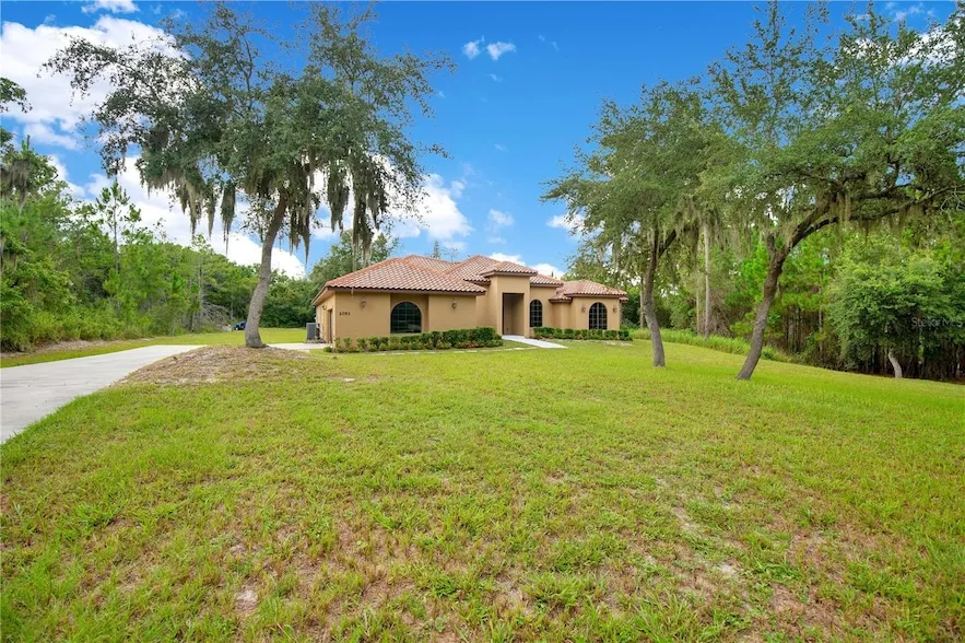 Nestled on a sprawling 3-acre estate in the serene locale of Deltona, this custom-built home offers an unparalleled blend of luxury and privacy. Boasting four spacious bedrooms and three elegantly designed bathrooms, the residence is perfect for families seeking both comfort and style. From the hand-trimmed and hand-painted moldings to the coffered ceilings in the master bedroom with personally selected fixtures, this home is ready for the executive who desires seclusion or the family that needs extra space for living and entertainment. The extra-long driveway and huge front yard are ideal for gatherings of any sort. Private access ensures a secluded and secure environment, while the expansive grounds provide endless possibilities for outdoor activities, gardening, or future expansions. Modern amenities, thoughtful architectural details, and high-end finishes throughout the home make it a true gem in one of Deltona's most desirable areas. Whether you're looking to relax in the tranquility of your private oasis or entertain guests in a grand setting, this property promises a lifestyle of sophistication and ease.