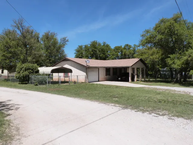 3 bedroom 2 bath Home sitting on a little over a half acre with a huge fenced yard and located close to Lake Brownwood. The home has a lot of storage and the rooms are good sized rooms. Living area is huge and has attached one car garage. Home also has a laundry room and a cover entrance with a circle drive. There are 2 storage building included in the sale. There are large live oak trees covering the yard for great shade.