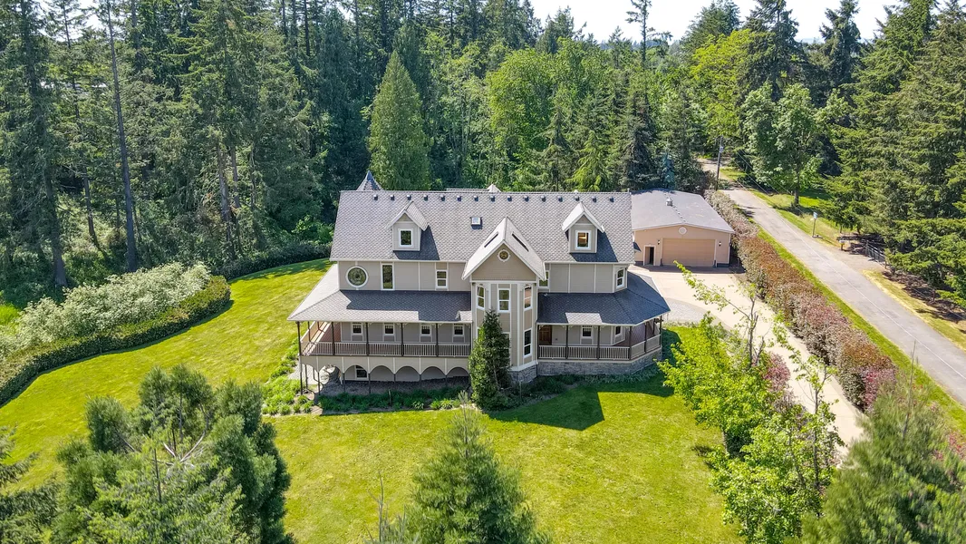 Rare Victorian-style estate on 3.21 acres! Breathtaking custom home, from majestic exterior to stately interior with ornate inlay wood floors, exquisite stain glass windows, formal entertaining spaces, private balcony views and an indoor pool. Ample bonus rooms for potential 7th bedroom, guest and/or home office space. This impressive gem is a true life-style property in the heart of Oregon's lush Willamette Valley farmland with large detached shop providing plentiful workshop/parking space. Adjoining 4.91 forestland also available
