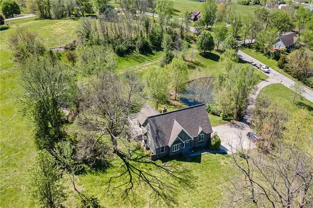Rare opportunity to own an updated home on acreage in Liberty City limits. Minutes from the Liberty downtown square. 4 bedroom, 3.5 bathroom home on 3.22 acres with a 30x30 out building and stocked pond. Greeted into the home there is a formal dining room that wraps around into an updated kitchen. The kitchen is complete with custom cabinetry, granite countertops, stainless steel appliances, tile backsplash, and white farmhouse sink. Kitchen opens to a 2nd dining space that walks out to a covered deck with vaulted ceiling covered in cedar. Living room with vaulted ceiling, carpet, and fireplace. Walk-in laundry room. Primary bedroom with en-suite hosts granite countertops, tiled shower, & dual closets. An additional bedroom and full bath finish out the main level. Upstairs boasts 2 large bedrooms with dual closets and a full bathroom. Finished lower level with luxury vinyl, oversized wet bar with granite countertops, and a half bath. 30x30 outbuilding with concrete floor and electricity. Newer roof and gutters. Liberty School District.