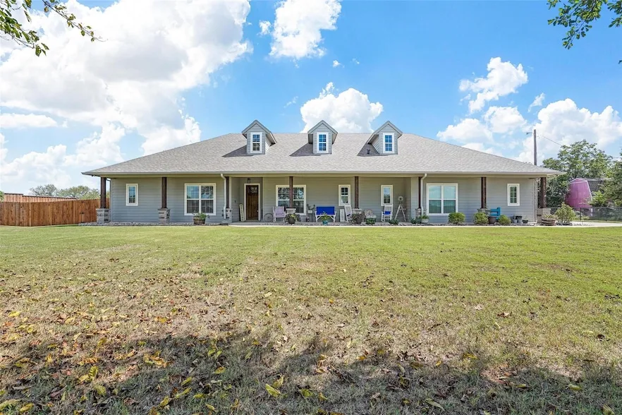Beautiful ranch style home on 3.22 manicured acres with an electric gate entry. The open floor plan flows from a formal dining space into the large living space accented with natural wood beams & an abundance of windows letting in natural light & providing a view of the outdoor living space & sparkling in ground swimming pool. The kitchen has a unique island, gorgeous cultured marble, over & under cabinet lighting, gas stovetop, double oven & huge walk in pantry. A master suite is situated in the rear of the home for additional quiet & privacy, room for a sitting area and the en suite includes dual vanities, an oversized tiled shower, a Texas size closet with tons of built in shelves & drawers. Relax, enjoy family time or entertaining in your backyard oasis that includes a covered outdoor kitchen, a screened in sunroom, gunite pool & large yard. Behind the home are 2 carports, 1 for RV parking, a 3,000 sf metal shop with 2 roll up doors & an attached 2 bed, 1 bath guest house.