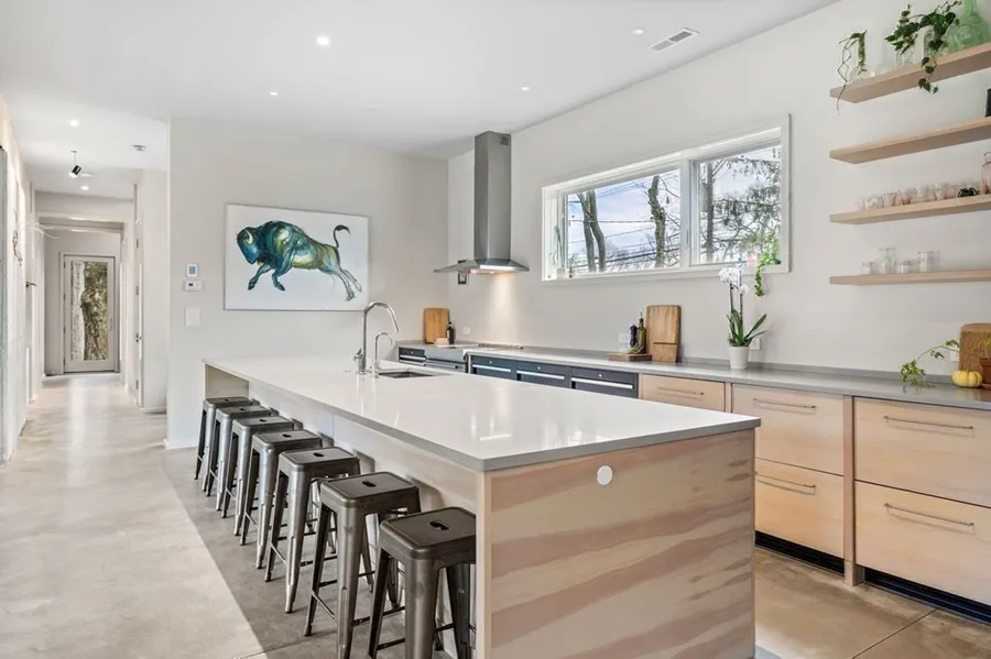 This Spectacular Modern Eco friendly home sits on a 3 ACRE secret garden compound next to the Blue Hills Reserve. The house, and separate 2,250sf heated artist/yoga studio, sit in the middle of a private arboretum full of exotic trees from around the world. Pathways through perennial gardens and over a creek offer endless serenity. This new construction is metal-clad, with top-of-the-line mechanical equipment, radiant heat, and hydronic forced air heating and air-conditioning systems. 24 studio-grade, in-ceiling Klipsch audio speakers are hard-wired throughout the home, ready to bathe you in music. Designed around nature, imbued with simplicity and efficiency for a high quality of living. A spacious kitchen, dining and living area, are perfect for entertaining. The guest quarters can be closed off and offers a separate, private outdoor entrance. This is an ultra-modern, multi-structure b...