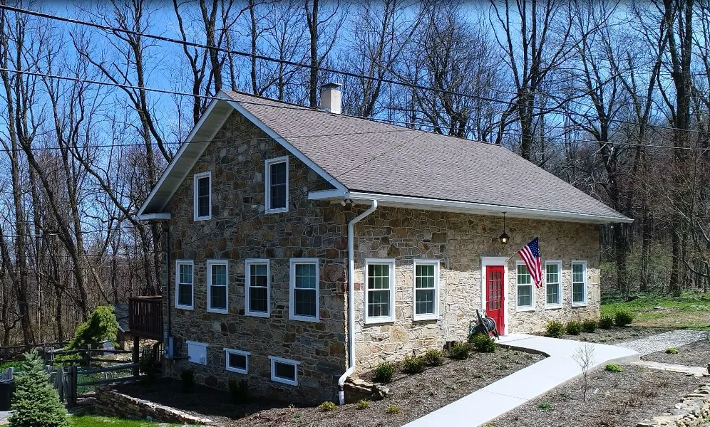 The character of the 18th Century with the modern Conveniences of the 21st! Located close to Bear Creek Resort, this unique Circa 1790 Stone home overlooks a pond, stream and 3.23 beautifully partially wooded acres. The historic character includes the gorgeous stone work, random width and wide plank hardwood floors, deep window sills and spacious rooms. The modern convenience includes over $140,000 in upgrades over the past 3 years including new Central Air, new Oil HW heat, new insulated windows, fresh paint and refinished flooring. On the first level you'll find a large living room, dining area, updated kitchen and a family room with built-ins. Upstairs are 3 bedrooms including a master suite and 2 full baths. The lower level is a walk-out. The great daylight space is usable or can be further finished into a recreation room.