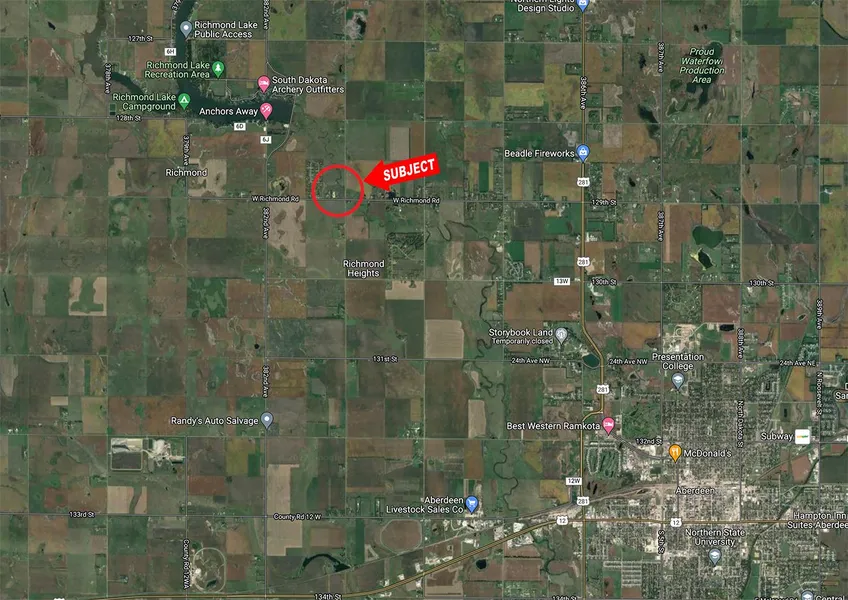 Research Parcel InformationFrom Aberdeen, SD at Ramkota Inn take Hwy. 281 north approx. 3 miles, then west on 129th St./Co. Rd. 13 to the property.