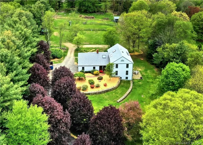 Custom built Colonial style home set at the end of a quiet cul-de-sac with a legal in-law apartment and a 4 stall barn. You will be amazed by this spacious, well-built home which sits perched upon a knoll with a sweeping front lawn filled with mature, beautiful trees. The exterior has been freshly painted and has a brand new roof. The interior is an entertainer's delight with formal and informal spaces. Hardwood floors throughout have been freshly refinished and the interior has been painted. This home has a wonderful floor plan as the rooms flow seamlessly together. The first floor offers a large country kitchen with abundance of cabinetry, a wet bar, recessed lighting and expansive windows which overlook the beautiful backyard. Formal dining room with custom in-laid hardwood floors will be enjoyed during the holidays! The family room has vaulted barn wood ceiling and a dramatic floor to ceiling stone fireplace. First floor office with wide peg hardwood floors. Bonus 3 season sun porch. Large master suite & 3 additional bedrooms and full bath on the 2nd level. Fabulous legal in-law on the lower level with brand new kitchen, new carpet, full bath w/shower, laundry and 2 bedrooms. Step outside onto the large deck which expands the entire back of the house and enjoy the views of the 4 stall barn and paddocks. This parcel of land is so beautiful, serene and peaceful. Bring the horses, chickens, goats to this beautiful setting!