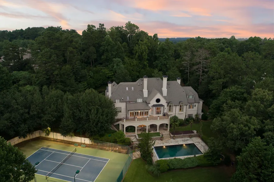 This private gated estate is situated on 3.27 lush tree-lined acres with spacious lawns and beautiful landscaping. With its 6-bedrooms, 8-full baths, 3-half baths, this estate delivers with custom details featuring a two-story grand foyer with floor to ceiling windows and showcasing a winding staircase. Enjoy the many outdoor entertaining opportunities with multiple stone terraces, outdoor seating areas, heated pool, stone hot tub and lighted tennis court. This home is located just minutes north of downtown Atlanta and the citys top attractions.