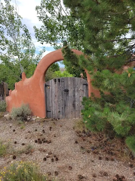 Offered here is a home on 2.03 acres PLUS a 1.25 acre adjacent homesite with electricity and well shares, for a total of 3.28 acres of space and views. This charming, furnished 2 bedroom 2 bath home has been well loved by its owners for nearly 3 decades, gently used as a vacation home. Living is in the round, it features a newly remodeled cook's kitchen with cut stone countertops, all new appliances and a new propane water heater. Uniquely creative, this special adobe home has many artistic Taos style details including an arched, circular seating around a fireplace in a sunken living area, brick arches, flagstone floors with inset designs, and a bedroom and bath addition. The sunset views go on forever out the patio. The home is sited for solar gain, its south facing windows contribute to winter heating. A wood stove that is the major heat source for the front of the house. Electric baseboard heating is in the back bedroom, laundry area, second bathroom. There is a lockable storage shed, wood shed, and the enclosed yard has lots of mature trees on a drip irrigation system. A new leach field was installed in 2018. The homesite is 2.03 acres, and additional adjacent property a 1.25 acre lot) with electricity and well shares, also owned by the sellers, available for purchase for a total of 3.28 acres. See MLS # 112405.