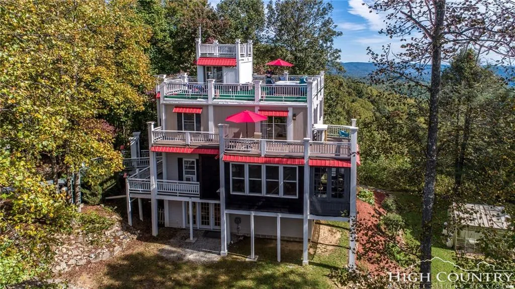 There is a jacuzzi on the roof! And the VIEWS! This spacious home, nestled on 3 wooded acres, is a work of art. Enter the home on a bridge over a pond and thru a gate. Once in the home you will notice many artistic touches including hand-made plaster relief of trees in the bathrooms. This home is not lacking for rooms to cuddle up in and stay over the winter, but the outside spaces are fabulous and well. The flat roof offers long range views all around, the main level decks are great places to view wildlife, and there is a cozy screen room off the kitchen. The first level is walk-out right into the lawn so you can enjoy puttering in the Greenhouse. The detached garage also offers plenty of square footage to enjoy other hobbies. Come see this wonderful Castle In The Woods!