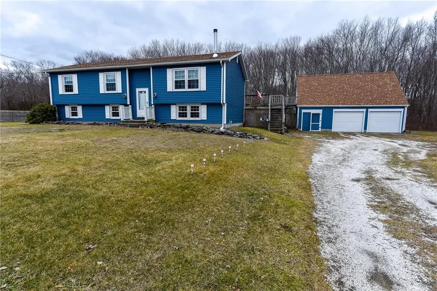 Welcome Home! This 3 bedroom, 2 full bathroom home is situated off the road in the midst of 3.3 acres of land! As you approach the house, you will notice new vinyl siding and a young roof. Once inside, there are hardwood floor throughout. Living room features a wood burning fireplace. Master bedroom offers private bathroom with tiled shower stall. Full unfinished lower level with space that could easily be finished for extra square footage. Detached garage features plenty of space for storage and 2nd floor unfinished loft area. Solar system is owned by sellers. The entire lot is currently not all cleared.