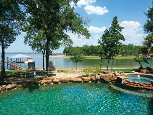 Fantastic waterfront estate on Richland Chambers Reservoir encompassing over 3 treed acres (3 lots) 1.5 hours southeast of Dallas. Located in the upscale gated 'Wilderness' community, this Austin stone home has 4 bedrooms and 5 baths (approx. 5000SF) and features an open plan with a gourmet kitchen, large family room with a fireplace and a spacious master suite. Separate study. Upstairs are two bedrooms and a huge game room with a roomy walkout balcony. Enjoy the pool/spa and boathouse with two slips. Plenty of guest parking, RV barn and two RV hookups. Beautifully designed property with exciting open water views.