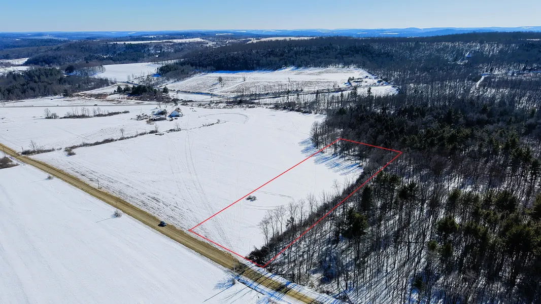 A small natural stream runs along the southern boundary of the parcel, flowing west to east, adding character and privacy to the land. During the recent site visit, the stream was observed frozen over, indicating a consistent water feature in colder months.