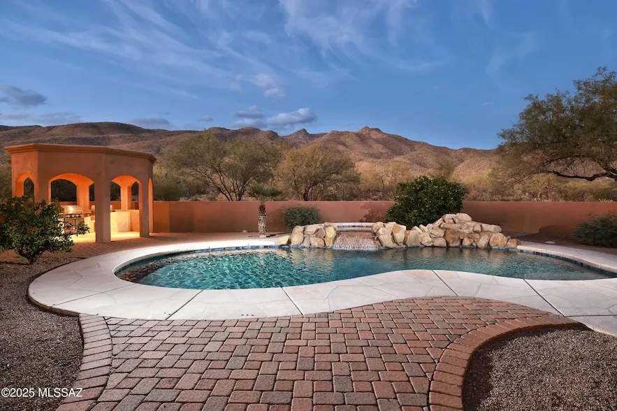 Custom home on 3.31 acres in gated Saguaro Hills Estates/Fetzer Ranch. Incredible Catalina Mt. views from this private desert retreat. Property includes heated pool & spa, 5 covered patios, a gazebo with built-in BBQ, & fruit trees. The elegant courtyard entrance with Cantera stone fountain welcomes you. Inside, 6612 sq ft of 14' high tray & barrel ceilings, Cantera stone columns, masonry fireplaces, travertine & marble floors, hand hewn alder doors and fine cabinetry. 5 bedrooms with private baths. Chef inspired kitchen includes Viking gas stove & pot filler, Miele Expresso machine, Wine refrigerator, granite island, & walk-in pantry. Family room with gas fireplace. Media room with surround sound. Oversized 3-car garage, gated paver driveway. Near parks, hiking, golf, shopping & dining. THE PROPERTYLocated within Saguaro Hills Estates/Fetzer RanchSpectacular Catalina Mountain Views3.31 Acres North facing backyardNatural desert surroundingsExceptional outdoor spaces Pool & SpaGazebo with Built-in gas BBQHighly rated Tanque Verde School DistrictNear Santa Catalina Mountains, Agua Caliente Park, McDonald Park, Arizona National Golf Course, Mt. Lemmon, hiking, shopping and moreHOME6612 Square foot custom home on 3.31 acresBuilt in 2007Mediterranean designCantera stone columns14' Tray & lighted barrel ceilingsMarble & Travertine tile floorsHand hewn interior door framesCustom Cabinetry Gated paver drivewayGated courtyard entrance with Cantera stone fountain10' Decorative Iron front door8' Decorative Iron back door5 Bedrooms (2 Primary Bedrooms & 3 Guest Bedroom Suites)7 BathroomsLiving room with Cantera stone columns, Tray & Barrel ceilingsSpacious Dining areaFamily room with Cantera stone fireplace open to kitchenOfficeMedia / Theater roomWhole house sound system -Multiple control locationsLaundry RoomKITCHENSolid alder wood cabinetsMassive granite islandViking 6-Burner Gas stovePot-filler3 Viking ovensViking Warming drawerViking Stainless steel RefrigeratorViking wine refrigeratorViking MicrowaveMiele Expresso Machine -Built-inWalk-in pantryOpen to Family roomOWNER'S SUITE #1Cantera stone gas fireplaceWalk-in Closet with custom cabinetryPrivate covered patioFull bathroom Dual sink vanityWak-in shower with 2 shower heads and 5 body sprayersGarden tubOWNER'S SUITE #2Spacious BedroomNorth-facing Patio access Walk-in Closet with custom cabinetryFull BathroomWalk-in showerGarden tubDual vanityGUEST BEDROOM SUITE #3Covered patio with mountain viewsFull bathroom Walk-in closetGUEST BEDROOMS #4 & #5Generous sized bedroomsDual sink vanitiesWalk-in showersWalk-in closetsMEDIA /THEATER ROOMSeparate Surround Sound System Motorized easy chairsLarge screenCeiling fans4 HVAC units 2 Water heaters with recirculating pumps2 Central vacuum unitsNuevo H2O Water filtration systemAlarm SystemPool door alarms POOL & SPASparkling pool Spillover spaRock waterfall Hayward pool filter (new 2025)Hayward gas pool heaterAqua Logic remote controls3-CAR GARAGE-OversizeEpoxy FlooringInsulated garage doors OUTDOOR SPACESPerfect for Entertaining5 separate covered patiosCantera stone fireplace on back covered patioPool & Spa & waterfallPoolside Gazebo with Built-in BBQ4 Orange trees, 1 tangerine treeLandscape irrigation systemDouble gate entrance to backyard
