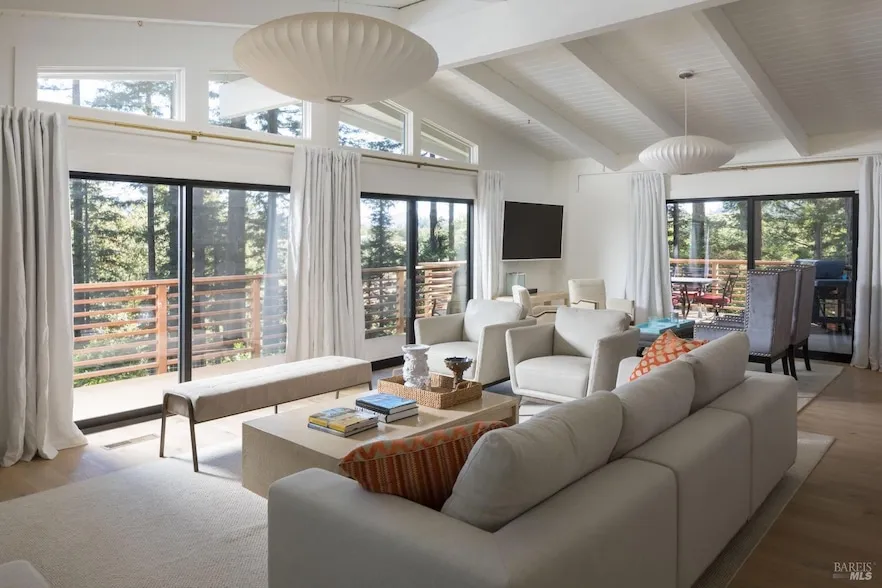 Lux newly remodeled 3br/4.5ba 3,100+/- sq. ft. mountain cabin-style home in the western hills of Calistoga in a short-term rental eligible area of Sonoma County showcases mountain views and exceptional indoor-outdoor living spaces. The main (2nd) level light-filled great room has vaulted ceilings and white oak floors. 3 sets of sliders lead to large deck w/ mountain views that overlooks new 36' x 16' heated pool w/ integrated spa. The gourmet eat-in kitchen features high-end appliances, custom cabinetry, large island with sink, and seating for 3. Also on this level is en-suite bedroom, media room, laundry, and half-bath. Outside, is an add'l stand-alone spa on this level. The 3rd level has two additional en-suite bedrooms, both with vaulted ceilings and mountain views. The primary suite's bathroom includes double vanities and a spacious shower. On the lower pool level, a large, conditioned entertaining area with a full bath opens to the pool and spa all fenced for safety and privacy. The home has all new systems, including HVAC, electrical, septic & plumbing, advanced water treatment systems, new windows and doors, and propane generator w/ transfer switch which automatically providing power in the event of PG&E outage. New 30+/- GPM well.