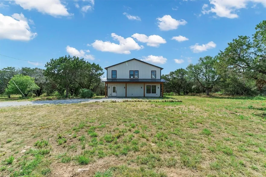 You have found your country get away with a view! This is a hidden gem that screams peace and tranquility! Come up the driveway, and discover this barndominium that is hidden amongst the trees. Plenty of room to create your outdoor oasis while sitting on the large front porch; create your gardens or build a barn and a chicken coop, 3.38 acres to create what you have dreamed of, no deed restrictions. This newly built barndo has been customized with cedar accents, granite countertops, beautiful flooring, large garden tub upstairs, or large walk-in shower downstairs, large front and back porch. Every piece of this house was handpicked! Make sure to go upstairs and take a look off of the balcony! The sunset is absolutely beautiful! 3.6 miles to the closest boat ramp. Again, plenty of room to park your boat, or turn it around and of course you could build you own boat storage. Come out with an open mind to see what you could do with this piece of land. Refrigerator does convey.
