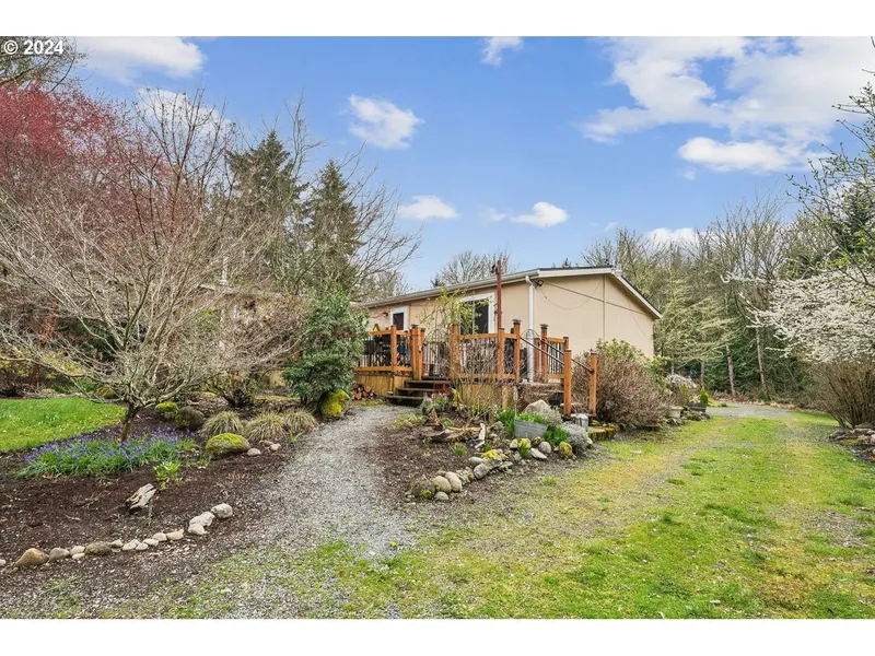 Come enjoy your peaceful and private triple-wide Manufactured home, 1880 sq ft on 3.38 acres. New furnace and New Trane Heat pump, Newer windows, and New roof with Leafguard gutters. An inviting front deck leads into a cozy living room with a wood fireplace for cold winter nights. The kitchen offers ample cabinet space, an island for food prep, and an adjoining dining space for gatherings. The primary bedroom has an extra large walk-in closet and bathroom, while the two additional bedrooms have a shared bathroom. Head out to your spacious deck and view the mature fruit trees, gardens and 12x12 gazebo. Walk along the walking path to your 4 out-buildings with plenty of storage. Great local schools, Weyerhaeuser elementary 2.3 miles away.