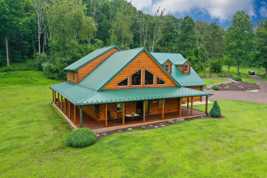 This beautiful log cabin home nestled into the edge of the Pocono Mountains is nothing short of awe-inspiring. Featuring 4 bedrooms, 2.5 baths, and over 3,000 square feet of living space, it has surprises around every turn. The main floor's open floor plan concept is immediately noticed as soon as you step foot inside. The soaring 23’ ceiling, beautiful recessed lights, and huge windows add to an already incredible setting. Highlighting the main floor is an amazing gourmet kitchen that boasts all stainless steel appliances, a gas cooktop with hood vent, center island with bar seating, and a spacious pantry for storage. Just off the kitchen is a spacious family room area with a corner gas fireplace and floor to ceiling stone surround-- perfect for warming up during the cold winter months. It also includes access to the covered front patio, providing views of all that nature has to offer. A convenient first floor owner's suite awaits, featuring a sizable bedroom with a fireplace and large walk-in closet. The owner's private bath is a marvel and is highlighted by a stunning walk-in tile shower. Making your way to the second floor, you'll be greeted with a spacious 27x11 loft, currently being used as a billiards area overlooking the main floor. There are 3 additional bedrooms, a private office area, and a full bath as well. The exterior is just as incredible as the inside boasting open acreage for outdoor activities and a patio with firepit that’s perfect for nights under the stars. Additional features of this home include the oversized 3 car garage, custom designs throughout, and a private driveway. This private and serene property is located just minutes from countless amenities—Bloomsburg Airport, Bloomsburg University, the beautiful Susquehanna River, State Game Lands, and more. Don’t wait to schedule your showing today!