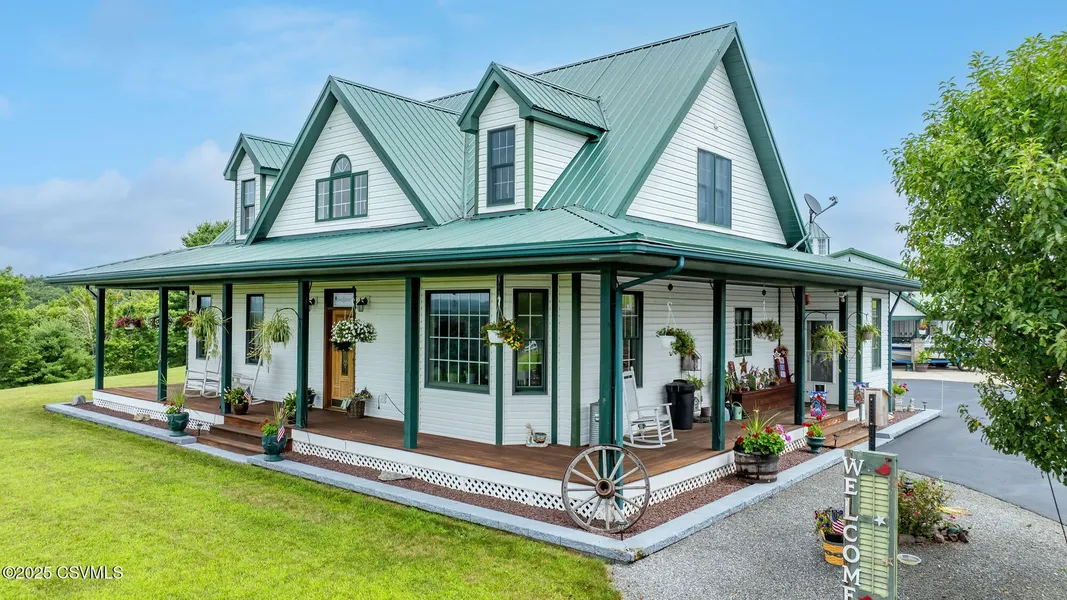 This stunning custom-built Cape Cod is immaculate and loaded with upgrades. Step inside to an open-concept floor plan featuring a soaring cathedral ceiling, a cozy see-through fireplace, and a walk-in pantry off the gourmet kitchen with Corian countertops. The first-floor primary suite offers comfort and convenience, while the lofted balcony leads to two additional bedrooms. The finished lower level is designed for entertaining, complete with a rec room, pool table, home theater, small wine cellar, and even a sauna! Outside, you'll find not one but two impressive outbuildings. The first is a detached three-car garage with a half bath and separate laundry room. The second is your ultimate hangout space—an outdoor pavilion with a full kitchen, fireplace table, and breathtaking views all the way to Red Rock Mountain! Did I mention there's an elevator? This home truly has it all. Call or tex...