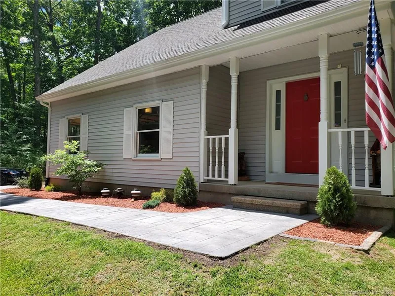 834 Wrights Mill Rd. Coventry, CT is an 8 room colonial that offers 4 bedrooms, 2.5 bathrooms and is situated on nearly 4 acres. This home is perched perfectily on this private lot that is just minutes from UCONN, ECSU and Hartford. The great room is a sun filled room with a sky light and slider that leads to the deck. The cathedral ceiling with exposed beams and the fireplace give this room a warm and inviting feel. The great room is wide open to the remodeled eat-in-kitchen wihich boasts a dining area, breakfast bar, granite counters, tile back splash, and newer stainless steel dishwasher, oven range and microwave replaced in 2018). Both the living room and dining room are good-sized with hardwood floors. There is also a half bath on the main level. All four bedrooms are on the upper level. The master bedroom suite features a walk-in closet, and spacious full bathroom with soaking tub and walk in shower. The 3 other bedrooms share a full bath on the upper level which has tile floor, granite counter top and a tub/shower unit. In just a few years, this owner has added a brand new central air conditioning system (air handler and vents), seamless gutters, new walkway from the driveway to front porch, 1500 gallon septic tank and D-Box, Dry well for water system, & a new slider in the family room. In addition to all of this, there's also a generator hook up, new refractory panels in the firebox and a security system with cameras. Roof is 6 yrs. young! MUST SEE!