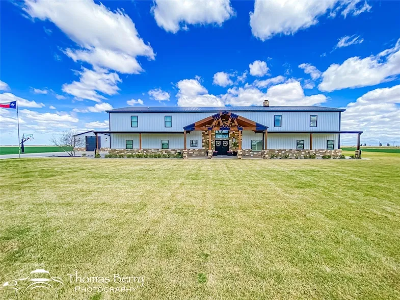 Welcome to your Texas dream home, a private gated entrance where luxury meets wide open spaces on 3.43 acres of pristine TifTuf Bermuda grass, fully irrigated by well water. This 5 bedroom, 3.5 bathroom custom home is designed with impeccable craftsmanship and no detail overlooked. Step inside to a split open floor plan featuring gunmetal metallic epoxy flooring and a 26 foot floor to ceiling wood-burning fireplace, creating a warm and inviting atmosphere. The kitchen offers top of the line appliances, custom Rustic Hickory cabinetry, and Quartz countertops. A spacious butler s pantry offers additional storage, counter space, and a prep sink. The mudroom is thoughtfully designed with six built in cubbies, seamlessly connected to a laundry room equipped with double washers and dryers for a busy household. Retreat to the primary suite, a private oasis featuring an oversized soaking tub, a stylish walkthrough shower, dual vanities, and a spacious walk in closet. The home gym, located above the primary suite, includes rubber gym flooring and a padded turf run. Upstairs, the home office loft comes with custom built ins, while the kids living room connects four equal sized bedrooms with two Jack and Jill bathrooms. Outdoor living is unparalleled, featuring a custom outdoor kitchen with dual stovetops, a pellet grill, Santa Maria grill, sink, refrigerator, and warming drawer. The in ground heated pool and hot tub include tanning ledges on both ends, an automatic pool cover, and a self cleaning pool sweep all conveniently controlled from your phone. Plus, a half bath is easily accessible from the covered back porch, providing convenience for poolside guests. Adding even more value to this incredible property is a 30x50 shop with electricity and an automatic 12 foot door, perfect for storage, hobbies, or a workshop setup.