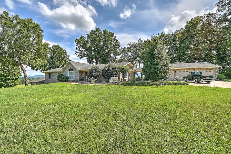 Chances are while driving from Greeneville to Johnson City you have looked over to observe this exquisite home with an amazing view of the mountains showcased in the back. Now is your chance to own it! With 3BR/3BA and 3 Garages this home has it all. Through the true foyer complete with coat closet lies a great room with vaulted ceilings, hardwood floors, fireplace, a large dining area, and great size kitchen with natural color wood finish cabinetry and all appliances. A favorite feature is the back covered porch with vaulted ceilings just off the dining area to enjoy the mountain views. Off the great room is a huge family/living area with all the space you could need for entertaining and spending time with friends and family. Multiple skylights throughout the home provide natural lighting in addition to the large windows. The primary bedroom suite has 2 large walk-in closets, bath with jetted tub, skylight, and walk in shower. The primary has room for a bed and sitting area for enjoyment of the mountain view at the back. Off the primary sitting area is a door to a covered outdoor alcove as well to enjoy the views. The other main level bedroom has a large closet and there is a full bath in the hallway with laundry. Heading downstairs there is another living space with the 3rd bedroom, huge room size closet and storage area with a full bathroom with tub shower combo. This room has 2 egresses from upstairs and to out through the basement area. There is a huge unfinished workshop area (seller has done woodworking there in the past) and a large basement area for storage. Additional storage underneath back patio. The outdoor space is fabulous with grand curb appeal from the front of the home and relaxation in the back. Lots of mature trees and a park like setting, trellis covered walkway, a gazebo and a large 5 ft deep koi pond with a rushing waterfall feature for wonderful sound. There is a 3-car detached garage with power, outbuilding, concrete drive.