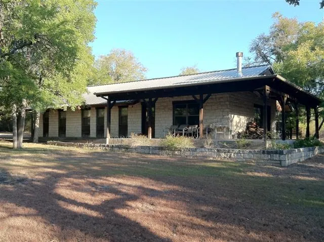 Wrap around 8' porch to sit and view wildlife grazing under several shade trees OR great for BBQ's and entertaining. Architectural designed for high energy efficiency with passive solar orientation. Constructed with Structural Insulated Panels on exterior and under metal roof, stone & cedar exterior. Vaulted ceilings & wood beams in all rooms, quality craftsmanship is evident in the custom woodwork throughout this custom built home by a wood craftsman.