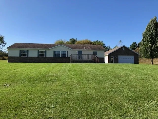 Country location! Beautiful rolling 3.68 acres with mowed trails in the back of the property, great place to ride the 4 wheeler or just take a walk and enjoy the view. 1782 sq ft home with 3 bedrooms & 2 baths with a full partially finished basement. Home is a Fleetwood Anniversary Edition with 2 x 6 construction and was a-top of the line model. Drywall, oak trim,split floor plan, huge master suite, solid oak cabinets, custom blinds, fireplace, newer tile in dining room & basement and seller has just installed new carpet on the main floor. Includes refrigerator, dishwasher, microwave and seller will be installing a new gas stove. Incredible 30 x 50 stick built garage/man cave with two 16 x 8 overhead insulated doors, one in the front and one in the back, this garage can hold 6 cars. Custom brick work on home and garage, paved drive way, 2- 500 gal propane tanks that are owned and full of propane. This is the one you have been waiting for.