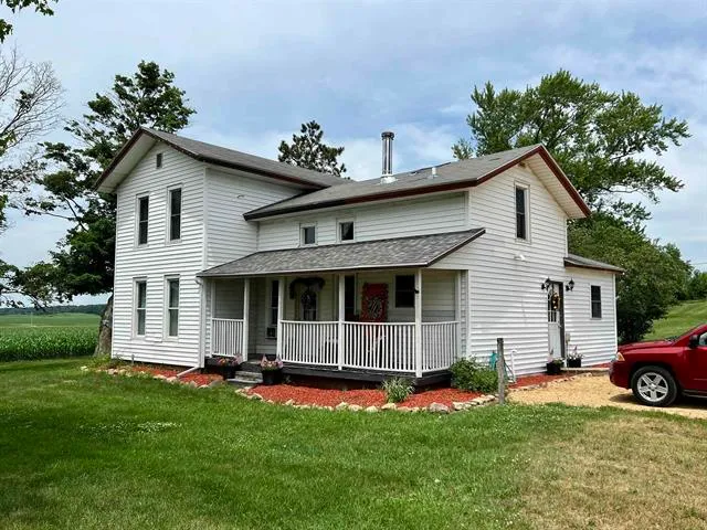 Cozy farmhouse nestled on 3.45 acres! Open floor plan on main level. Gorgeous cabinets in this large kitchen flowing into the dining area and living room. Lots of windows to let in natural light. Primary bedroom is on main level with full bath. Additional full bath on the main floor. 3 bedrooms upstairs. There is a 1 car detached garage, barn, feed storage building, and corn crib. Large yard to enjoy a bonfire and sunsets. Bring your horses and/or livestock to graze in the pasture along with chickens for the win! Great location to enjoy this farmette just outside of Albany.