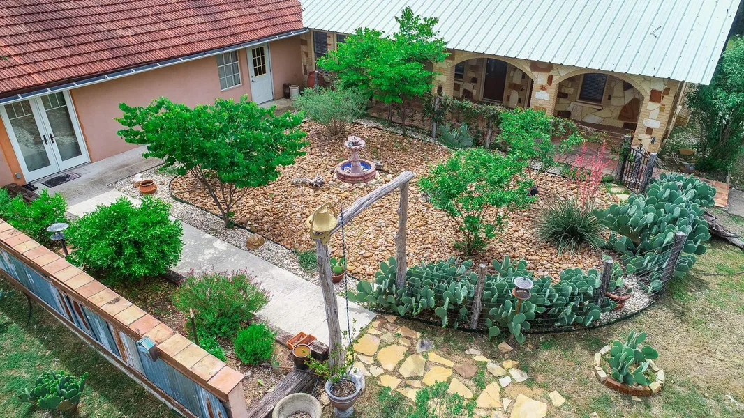 Presenting a Historical Oasis Property conveniently nestled and treed just outside the City Limits of Fredericksburg for the first time in over 20 years. With just over 3.5 fenced acres with pastoral views of the Texas Hill County and in-town amenities just mins away. This home offers the best country with wildlife that traverses the fenced grounds. The acreage offers agricultural potential and a fully insulated workshop that could offer assistance with the possible introduction of livestock. A concreate pad in place for a potential second workshop or greenhouse. The main historical stone home overs 2 living areas and 3 bedrooms with 2 full baths. The focal point of the main living room is a stunning masonry fireplace that imparts charm from a bygone era. The second attached stucco home is built with southwestern flair with cathedral ceilings offers a full living, dining, and kitchen uniquely outfitted with a one bedroom, one bath with full washer and dryer connection. If one desired there is potential to open a doorway between both homes to enable the blending of both living spaces into one larger home.