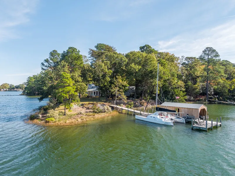 Looking for serenity & solitude? Outdoor fun & adventure? Youll find the best of both worlds at Travelers Rest on 3.5 AC nestled on a private point with 875 of waterfront on Indian Creek. Whether youre a serious sailor (60+ yachts have docked here & set sail to the Caribbean) or a novice navigator, this protected hurricane hole location lends itself to endless waterfront activities. Crabbing, tubing, jet skiing, fishing, paddling- savor them solo or share authentic memories with family & friends to last a lifetime. The 9 MLW pier & 26 boathouse have slips that can accommodate 3 large yachts. The 3500+ sq ft main house was completely remodeled in 2020/2021 & offers an open concept featuring water views from nearly every room. Designed with entertaining in mind, the heart of the home is its gourmet kitchen with lux appliances, quartzite countertops, wine cooler, & a stunning custom bar hewed from St Croix mahogany. The coveted first floor primary bedroom includes a sitting room, cedar closet, sauna/steam room (omg!) & a large bathroom with shower, soaking tub & double vanity. Upstairs you will find two guest suites and another full bath. A 4th en suite bedroom is tucked away above the attached garage, perfect for flex or multi-general living space. The gathering spaces of the home are all water-centric & span the length of the first floor. The basement is an additional hang out space for adults & kids. There are several outbuildings to suit your fancy. Legend has it that man cave was coined in this two story detached 3 bay workshop/garage with an unfinished apt above, all plumbed & ready for sheetrock. And, soon after, the original she shed was built nearby, currently a 200 sq ft exercise studio. The 450 sq ft open pole barn is used to store equipment & recreational toys. Stargazing and sunsets convey!