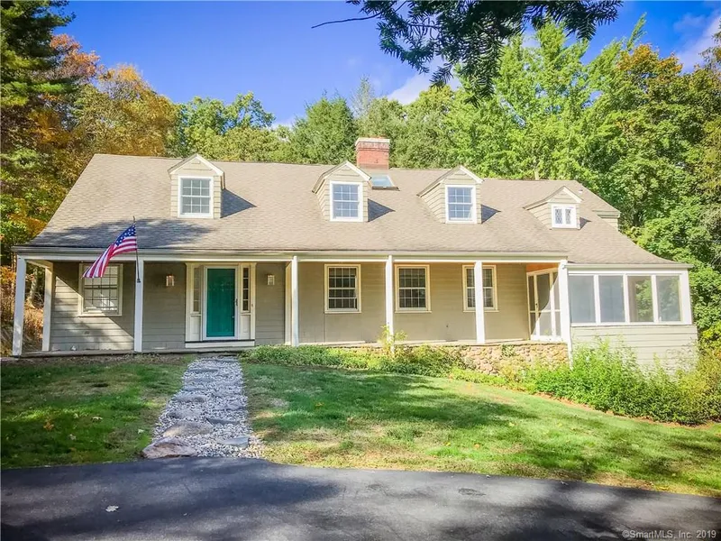 A NATURE LOVER'S PARADISE! Set on 3.5 serene acres, this impressive 4-5 bedroom Cape Cod style-home exudes charm & character throughout. A welcoming porch runs the full length of the house, adding to the ambiance of this immaculate home. The gracious foyer is roomy enough to accommodate a comfortable seating arrangement. The floor plan flows easily from room to room, making this home ideal for formal & informal gatherings. You will love the dining room & living room that features a beautiful wood-burning fireplace & a wall of built-in book cases, perfect for displaying book collections & personal decorative treasures. The stunning remodeled kitchen has SS appliances, granite counters & a breakfast nook that looks out to the private yard, deck & in-ground pool. The 1st floor bedroom could also function as an office or den. 1st floor family room, w/exposed beams & wood floors, has it's own...