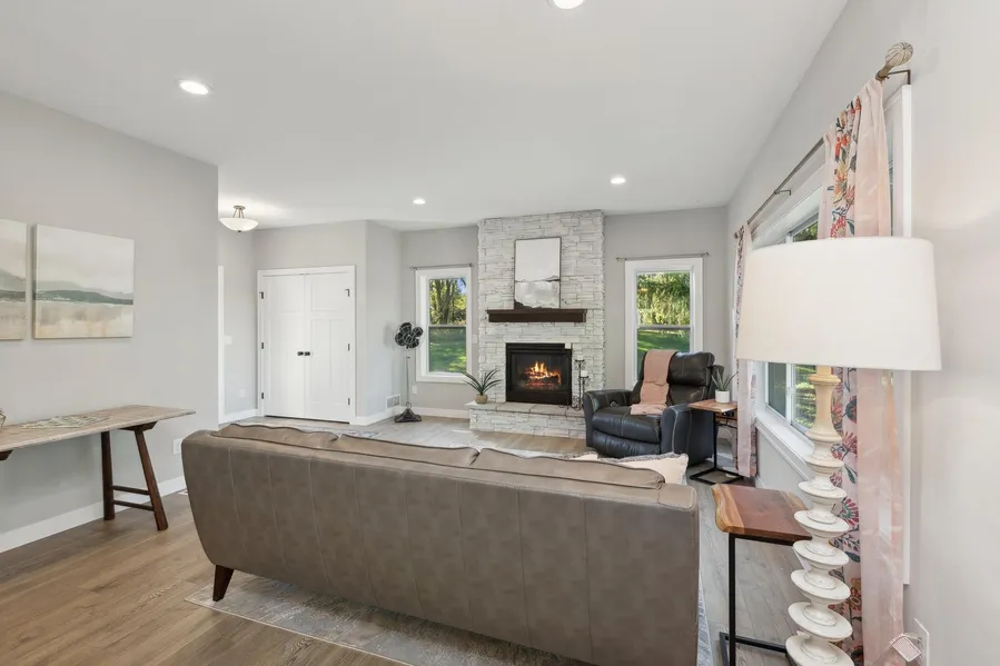 Charming Modern Farmhouse in Hudson's Horse Country - Discover your dream on 3.5 acres in the heart of Hudson's Horse Country. Built in 2021, this modern home offers the comforts of contemporary living while maintaining the character and charm of a hobby farm. The property includes three outbuildings: a 130'x55' barn, a 25'x30' stable, a 55'x50' machine shed, plus an iconic silo that adds a touch of rustic beauty. As you enter the home, you are welcomed by an open floor plan, where the living room features a gas fireplace, and the dining room offers views of the backyard. The kitchen is a chef's delight, complete with high-end appliances, quartz countertops, and a charming coffee bar. A conveniently located laundry room sits just off the oversized 3-car garage. Upstairs, you'll find three spacious bedrooms, each with large windows to countryside views. The lower level is filled with potential, offering the perfect opportunity to add value to your home. This property has fiber optic internet, ensuring seamless connectivity for modern living. The Town of Hudson allows for one farm animal per acre, making this the perfect setting for your hobby dreams. The property also has potential for extra income with storage rental in two of the outbuildings, including a machine shed with drive-through access and 14' high doors.