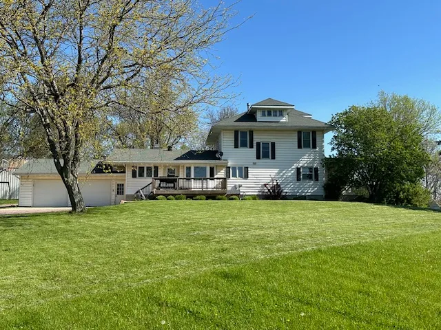 This quality 2 story home located 1/4 mile from the town of Hospers, Iowa has so much to offer for anyone looking for an acreage with a great location. The size of the home consists approximately of 1600 sq ft, 3/4 bedrooms, a bathroom on each level, a very nice workable kitchen with all appliances staying, large laundry room with washer & dryer. The potential fourth bedroom on the main floor is presently used as an office. Combination parlor and living room separated by oak colonades is carpeted but nice oak hardwood flooring is underneath. French doors lead you to the open staircase to the 2nd floor and the 3rd floor is a walk-up attic for extra storage. The 2nd floor bedrooms are carpeted but there is oak hardwood flooring beneath. This home was moved onto this location and added onto so the basement is a Liteform foundation consisting of a large family room, 3/4 bath and large storage room and/or a 2nd kitchen along with a 2nd set of stairs coming from the garage. The heating and cooling system is supplied by an electric heat pump installed in 2022, rural water, new septic system installed 10 years alo, vinyl siding, many of the windows have been replaced and a large deck to the front of the home. One of the more important structures with this acreage is the 60' x 108' machine shed which is completely cemented. By viewing this property, you will understand how great the location is with the view it has, the quality of the structure and endless potential and possibilities.