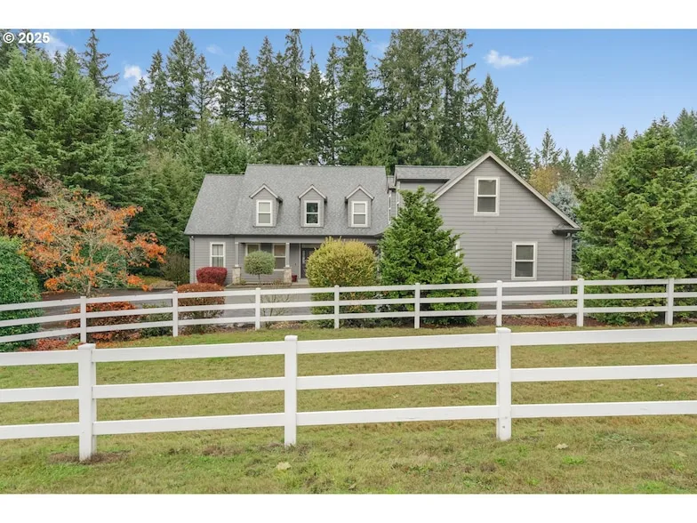 Stunning Retreat on 3.54 Acres! This breathtaking Craftsman-style home is surrounded by a beautiful boundary of trees. Ideal for those seeking privacy and space, the property comes complete with a barn, perfect for horses or other animals, offering endless possibilities for country living. Step into an elegant living room flooded with natural light, featuring vaulted ceilings, skylights, and a cozy wood-burning fireplace. The exquisite tile floors are beautifully inset with plush carpeting in the seating area, creating a warm and inviting space. A back wall of glass doors opens to a spacious deck, blending indoor and outdoor living. Host memorable dinners in the formal dining room adorned with classic wainscoting, or gather around the stunning granite countertops in the gourmet kitchen. This kitchen is equipped with stainless steel appliances, a cook island with an eat bar, and a conveni...