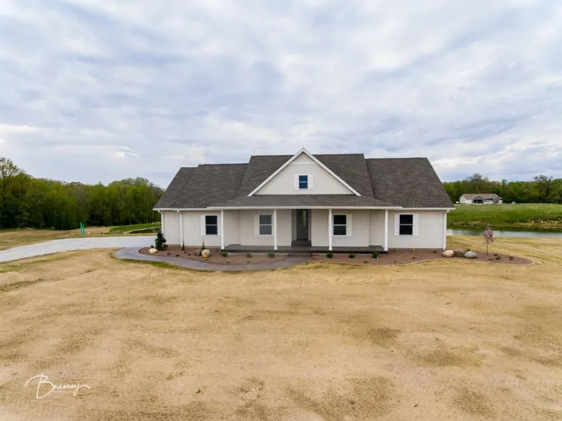Beautiful farmhouse style home on 3.5 acres of land M/L! Be the first to live in this brand new construction, complete with open-concept, vaulted ceilings, & more! The kitchen was tastefully done with quartz counter-tops, a farmhouse sink, & stainless steel appliances. The shiplap fireplace in the living room makes quite the statement! Two bedrooms separated by a Jack&Jill style bathroom with barn style doors. The Master Suite has two closets, one of which is a walk-in, and a private bath with double vanities. There's an attached 3 car garage just off the laundry room area. The lower level is untouched and full of possibilities with egress windows and rough plumbing already in place! The exterior has been professionally landscaped and even has a stamped concrete patio. All of this situated in a beautiful, rural subdivision overlooking one pond with shared ownership & water access. Locate...